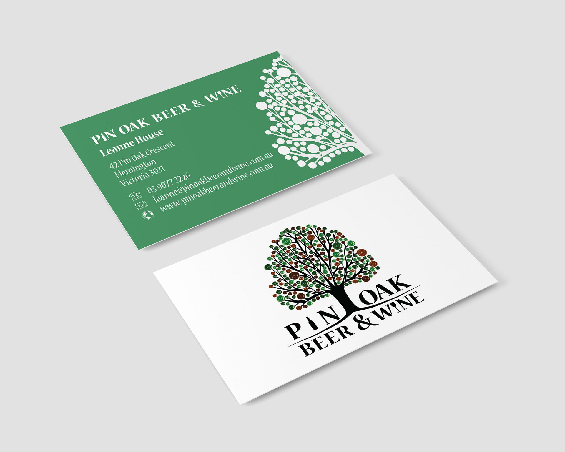 "Working with Catherine on the branding for Pin Oak Beer & Wine was a fantastic experience. I had only a simple idea - to include a Pin Oak tree in the design - but she transformed that into something truly unique and meaningful. The way she used the shapes of beer and wine bottles to create the oak leaves was brilliant, and the colours perfectly represent both the tree and the products I sell.