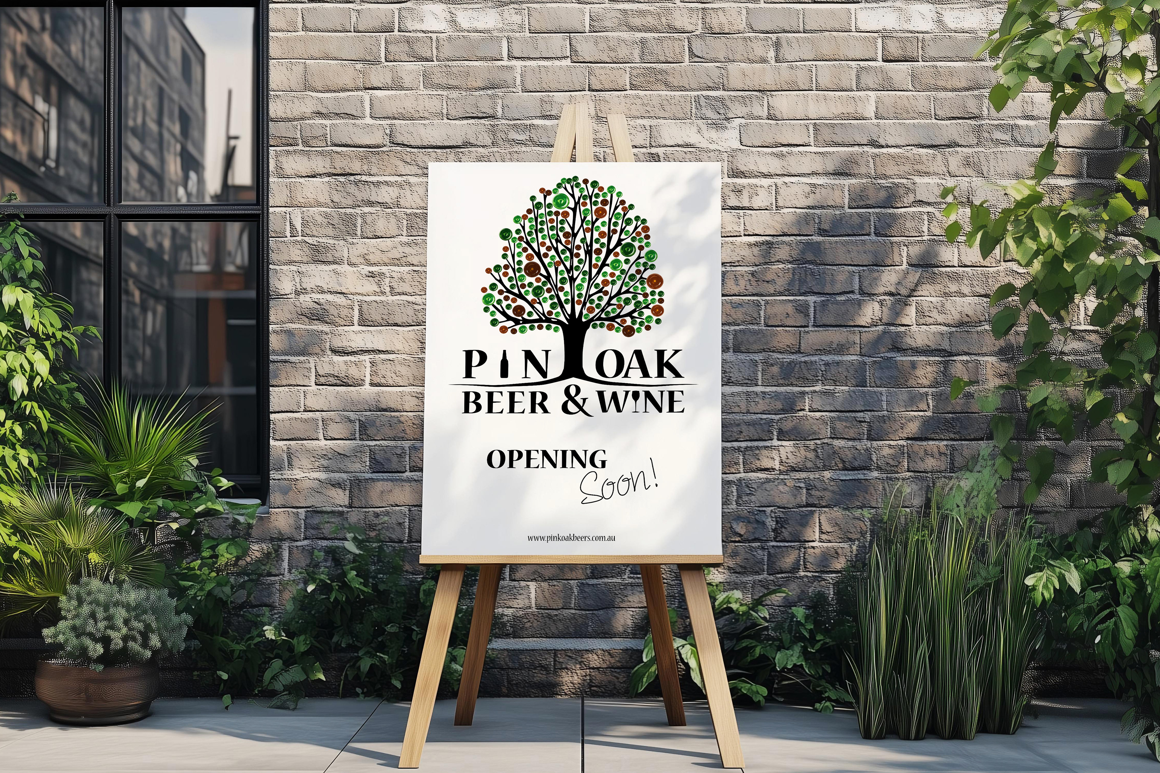 To support her launch, I also designed Leanne’s business cards, an Opening Soon poster, and a large die-cut window decal that became the shop’s main signage. This eye-catching design has since featured in videos shared by customers and fellow traders, helping to establish Pin Oak Beer & Wine as a distinctive presence in the community.